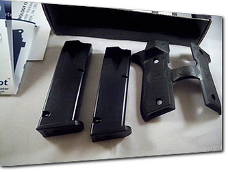 SpeedShot Performance & Training Systems Beretta 92FS Display Counter with 2 15rd Pro Mags NEW MODEL Replacement grip & 2 15rd Pro mags included easy to install with USA full factory warranty and support. Radetec is a USA based company in Pennsylvania with an overseas plant in Spain.