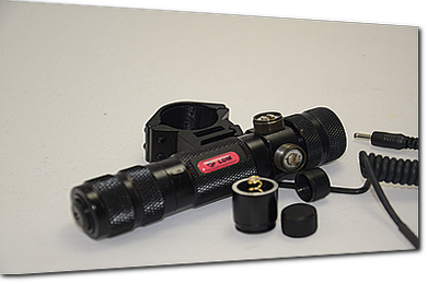 The windage elevation adjusters are ball lock click adjustment which will hold and lock pressure to keep the laser module dead on. The adjusters are protected by removable covers to prevent the loss of Zero during tactical/combat maneuvers. If the laser is inadvertently bumped/shocked the windage/elevation adjusters are below the laser caps and therefore cannot be knocked/bumped out of adjustment. Rail Mount for 20mm pica tinny Rail included. Coiled pressure pad remote included. Push On and constant on button included. Uses one CR123A Battery included. Laser housing is constructed with a non reflective black 6160 T6 aircraft aluminum body.