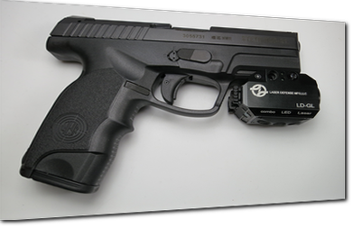 The LD-GL combines multiple functions and mounting capabilities into a single compact heavy duty unit. The LD-GL module contains a 250 lumen tactical flashlight with a user selectable constant on or strobe light beam combined with a selectable constant on laser pointer. The LD-GL has a visible high power Green 532nm laser pointer with a daylight range of up to 200 yards. The LD-GL is designed with a rail mounting system that can attach to almost any sub-compact to full size pistol, rifle, or shotgun. The rail screw can be field set to change from a sub-compact rail mount to a full size rail mount in a matter of seconds using standard field gear like an expended casing. If you own a sub-compact and were limited to a micro red laser that is barely visible, you can now possess the capability of targeting 100+ yards in bright daylight conditions and instantly acquire a target. Controlling the LD-GL module is simple, fast and easy; power control is a finger touch away and the selection controls are close as well. The LD-GL module is designed for ambiguous use, just push the rocker switch for 1½ seconds and the module will activate with the laser on. Then, if the user requires the tactical light or both the laser and light simply push the corresponding selector button. The LD-GL module is shock proof, dust, dirt, fog, snow and it is water resistant to 2 meters. The LD-GL will operate below freezing and was tested in extreme conditions; it performs with proven reliability and pin-point accuracy.